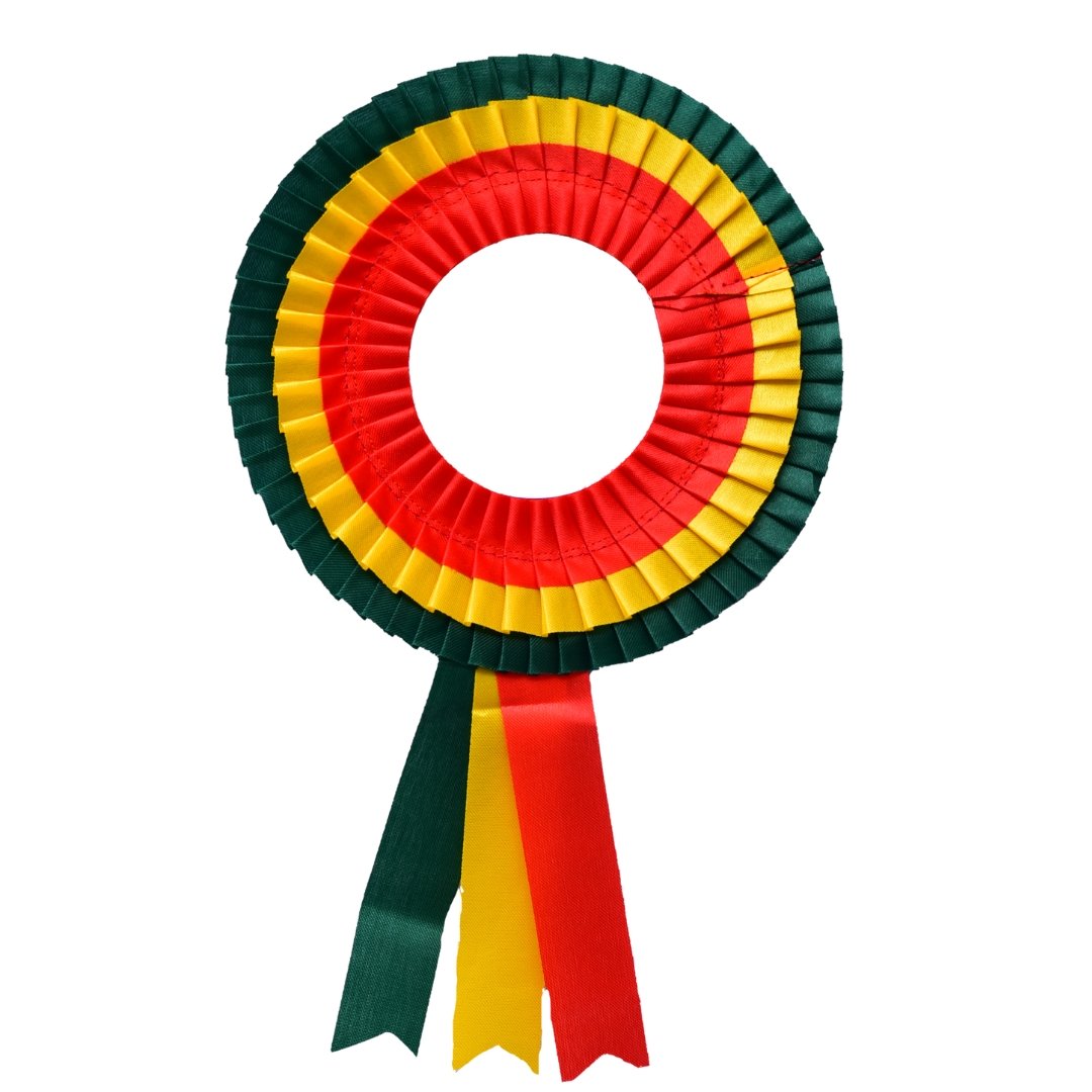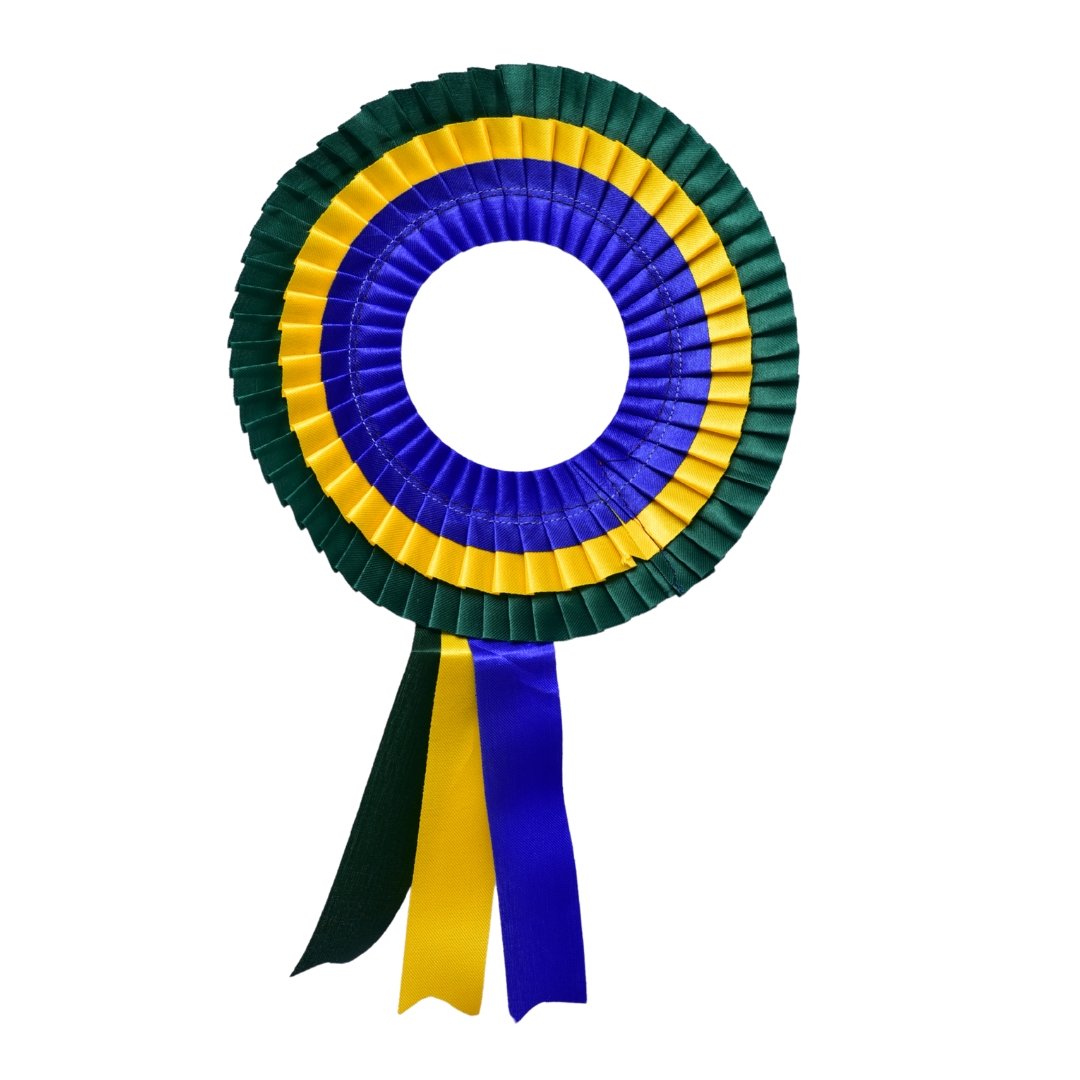 Designed with three layers of premium satin ribbons and a decorative centerpiece, this badge adds an elegant, festive touch to any event.