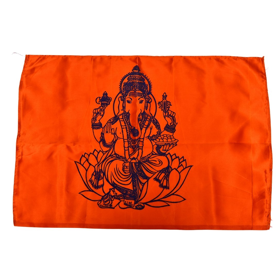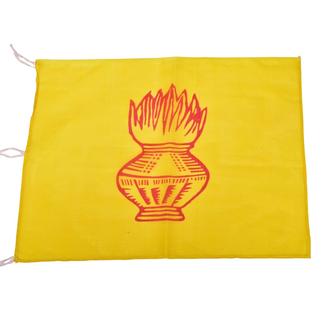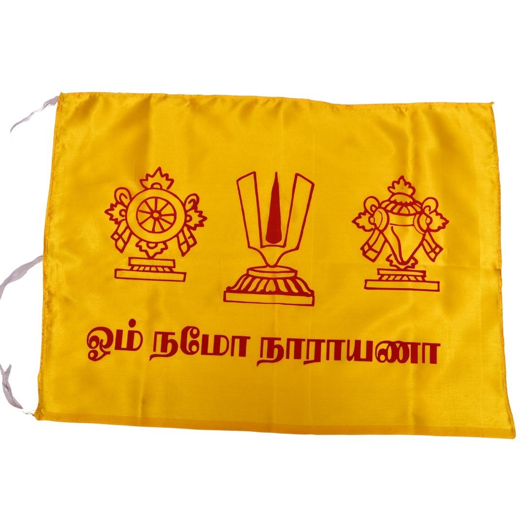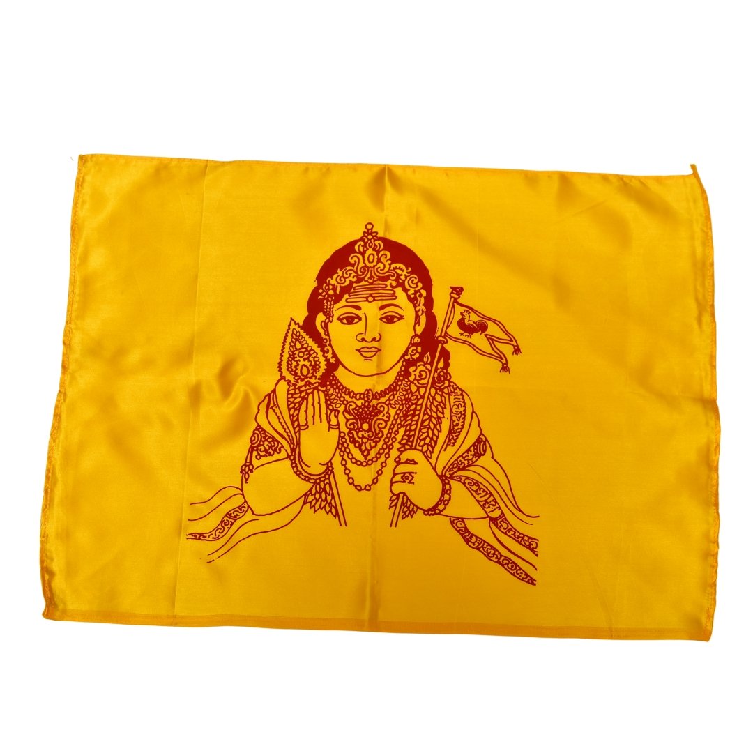 Crafted from high-quality satin, this medium-sized devotional flag brings grace and brightness to your prayer space or events. The soft, shiny fabric offers an elegant touch while being lightweight and durable.
